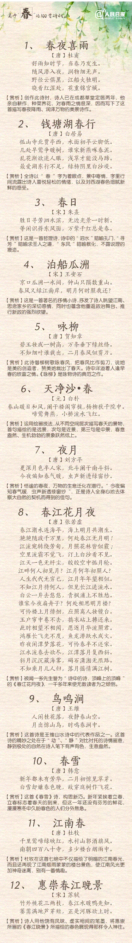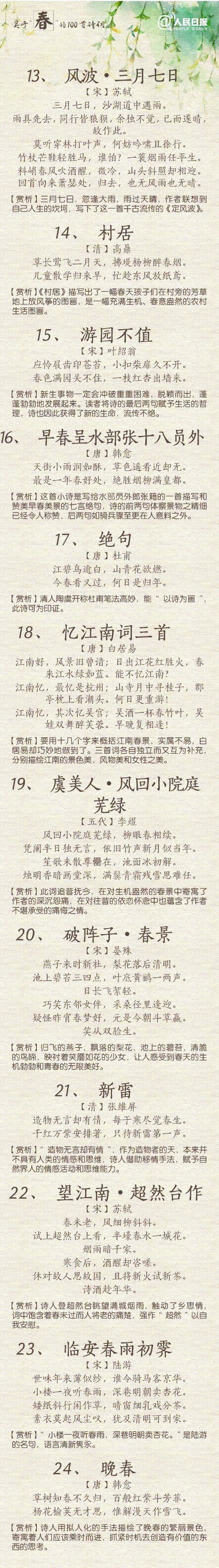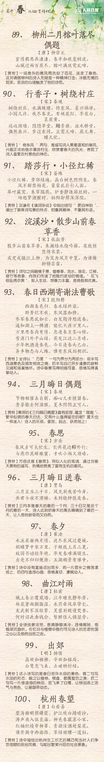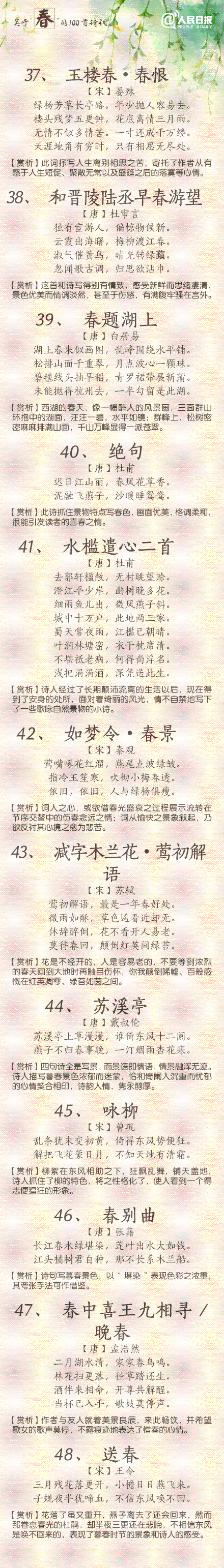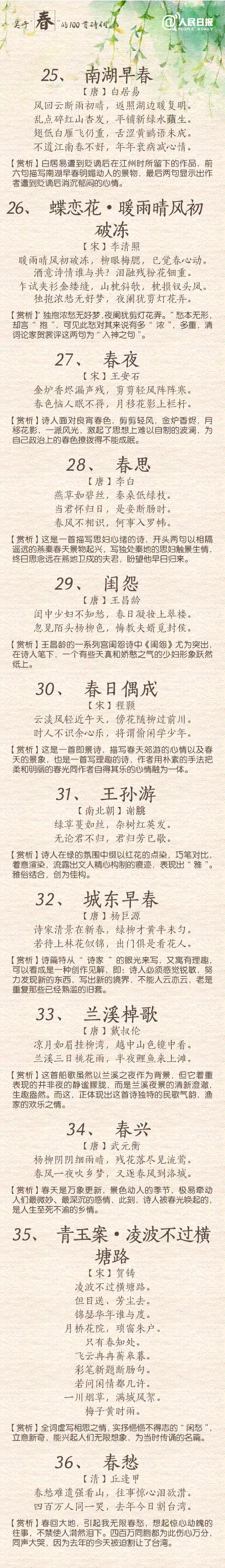 古往今来,无数文人墨客对“春”情有独钟:白居易醉心于江南春色,《忆江南》传世于今;苏轼感怀身世际遇,借春光抒写《蝶恋花》;杜甫的《春夜喜雨》融情于景,读来朗朗上口……100首关于春的诗词,你都读过吗?