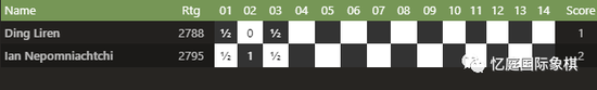 涅波姆尼亚奇火力全开:他在九盘棋中赢了五盘,输了两盘,获得了奖杯,而丁立人的等级分已经高出50多分(2778对2725),得分50%,获得了第四名。