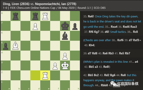 在新冠停赛期间,丁立人还经常在网上比赛中胜过涅波姆尼亚奇。他们在FIDE Chess.com在线国家杯上的对决对于获胜的中国队和丁立人来说都是巨大的成功,他以扎实的开局准备击败了他的俄罗斯对手。
